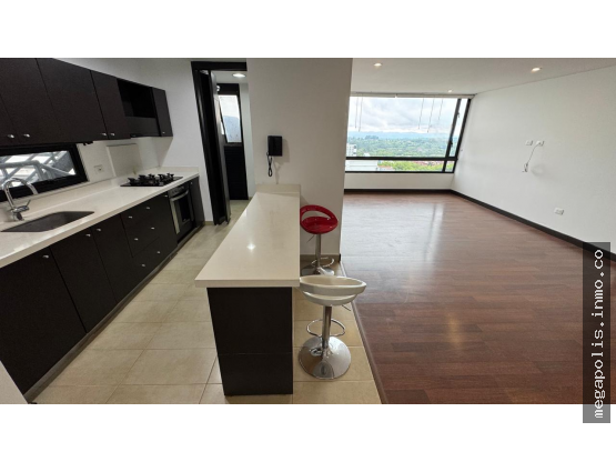 Características del apartamento: Sala-comedor amplia y luminosa, cocina integral tipo americana con barra, zona de ropas independiente con calentador de agua, baño social, dos habitaciones, cada una con closet y baño privado, estudio o espacio para home office, parqueadero privado para un vehículo.